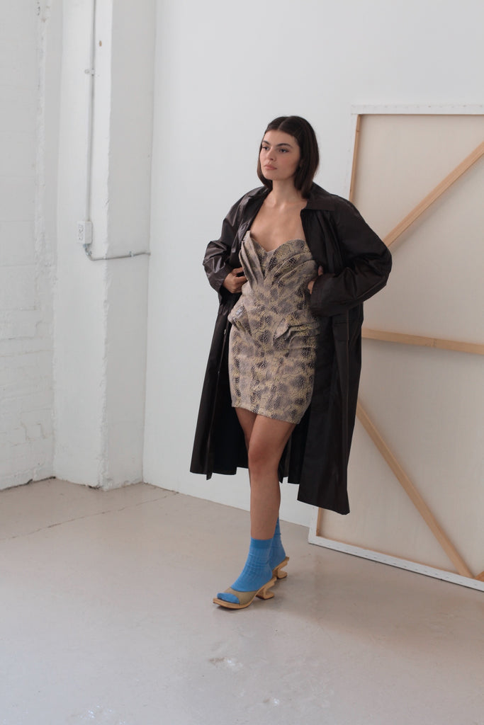 Strapless Sculptural Snakeskin Print Dress