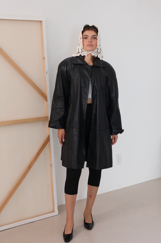 Black Leather Swing Coat