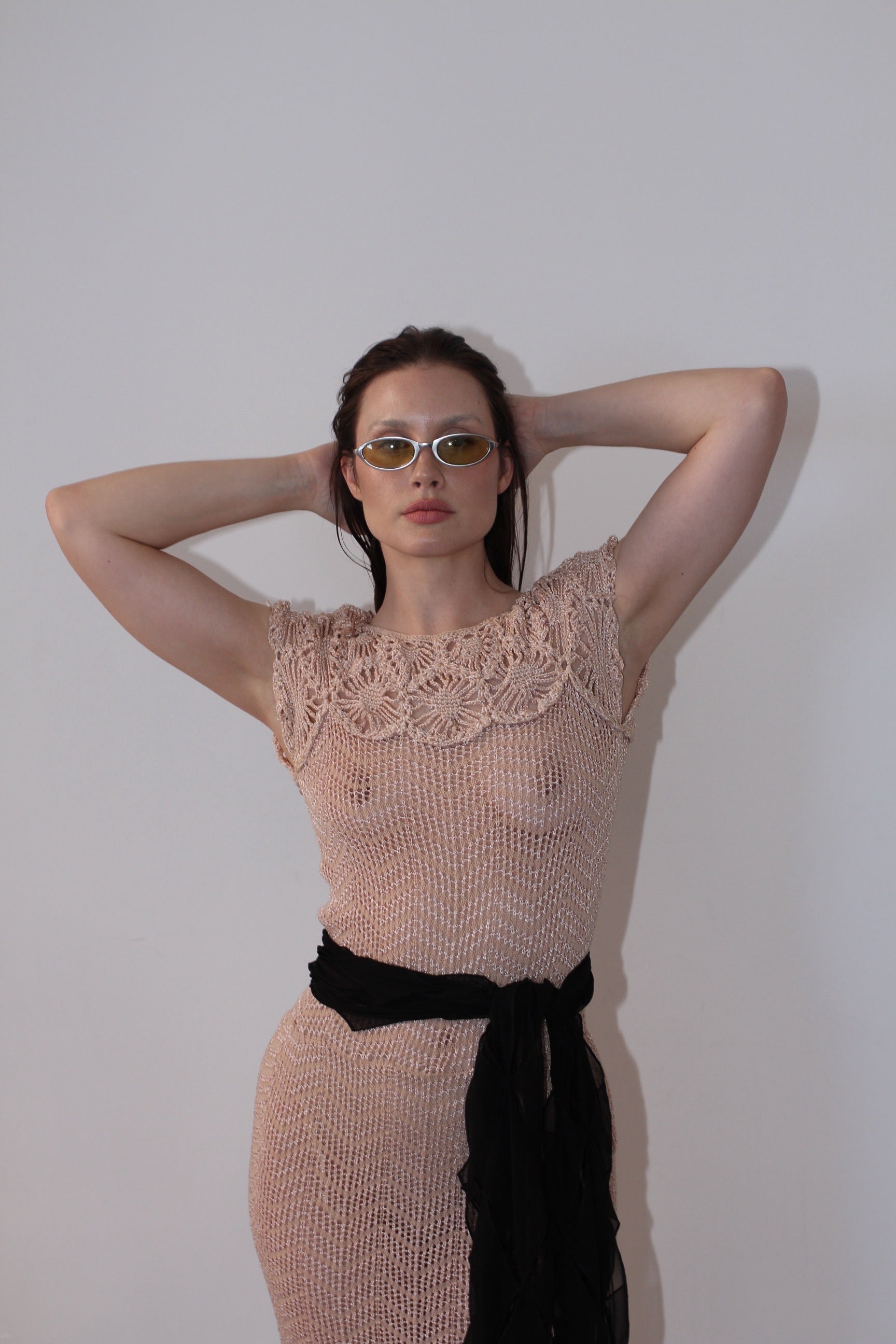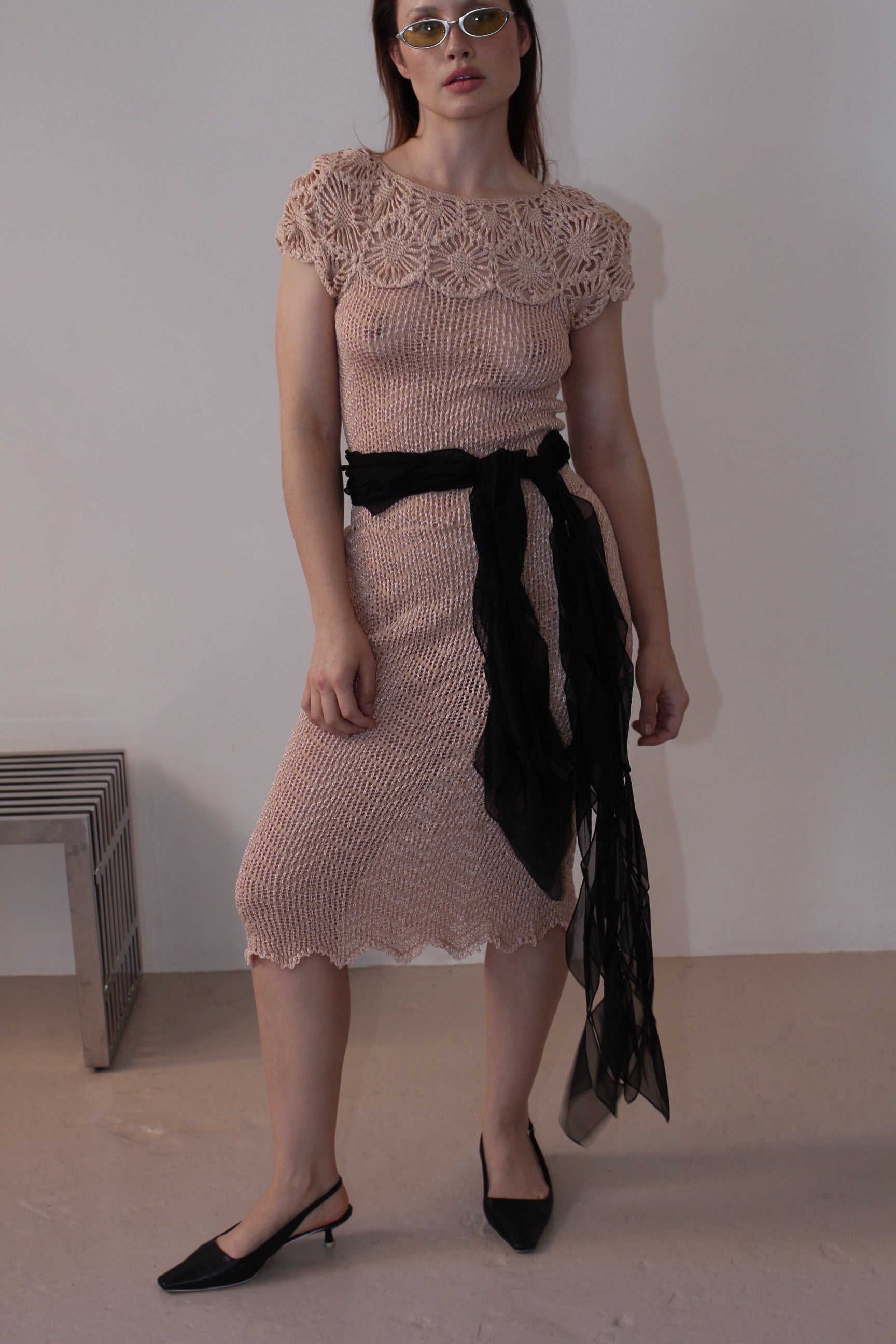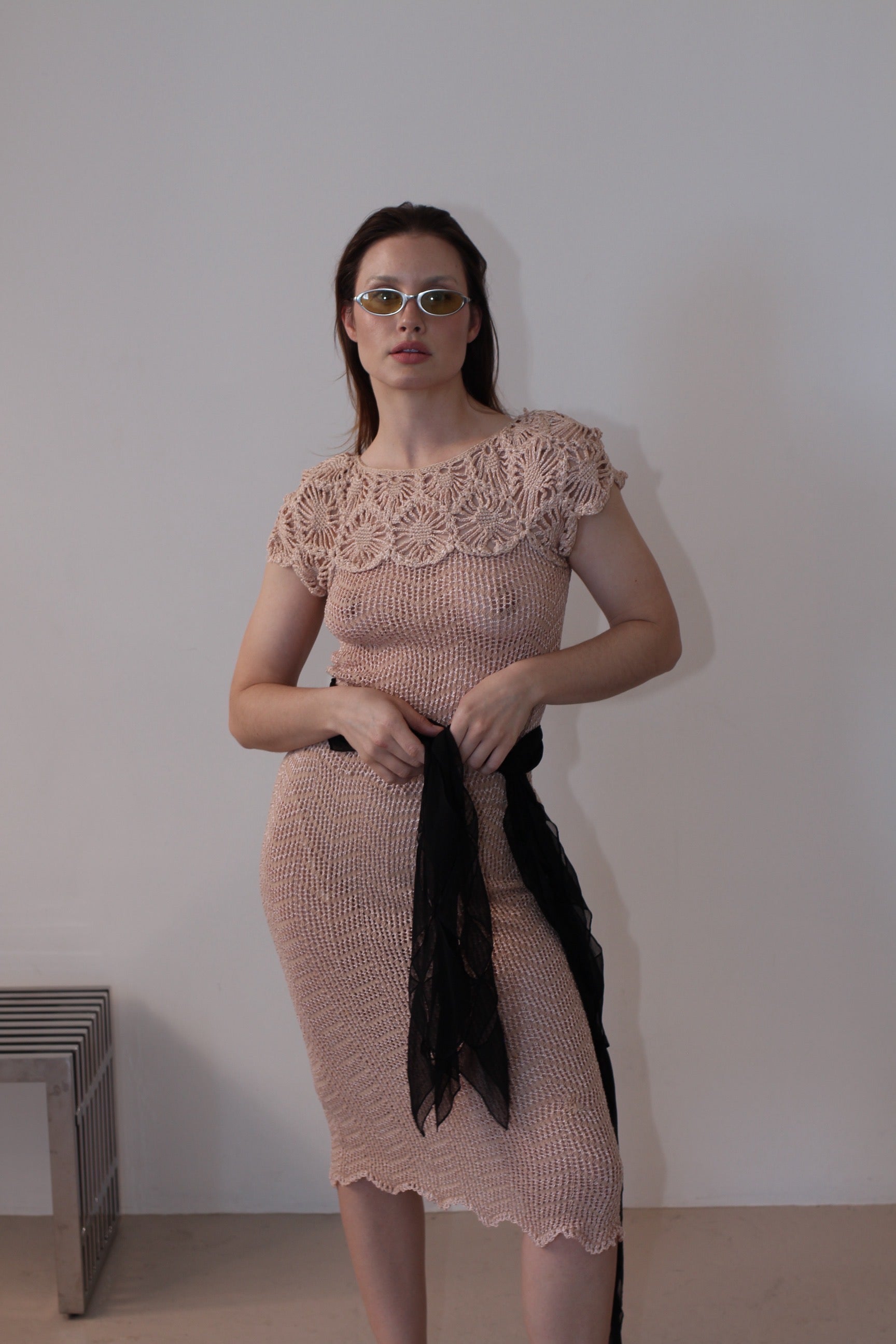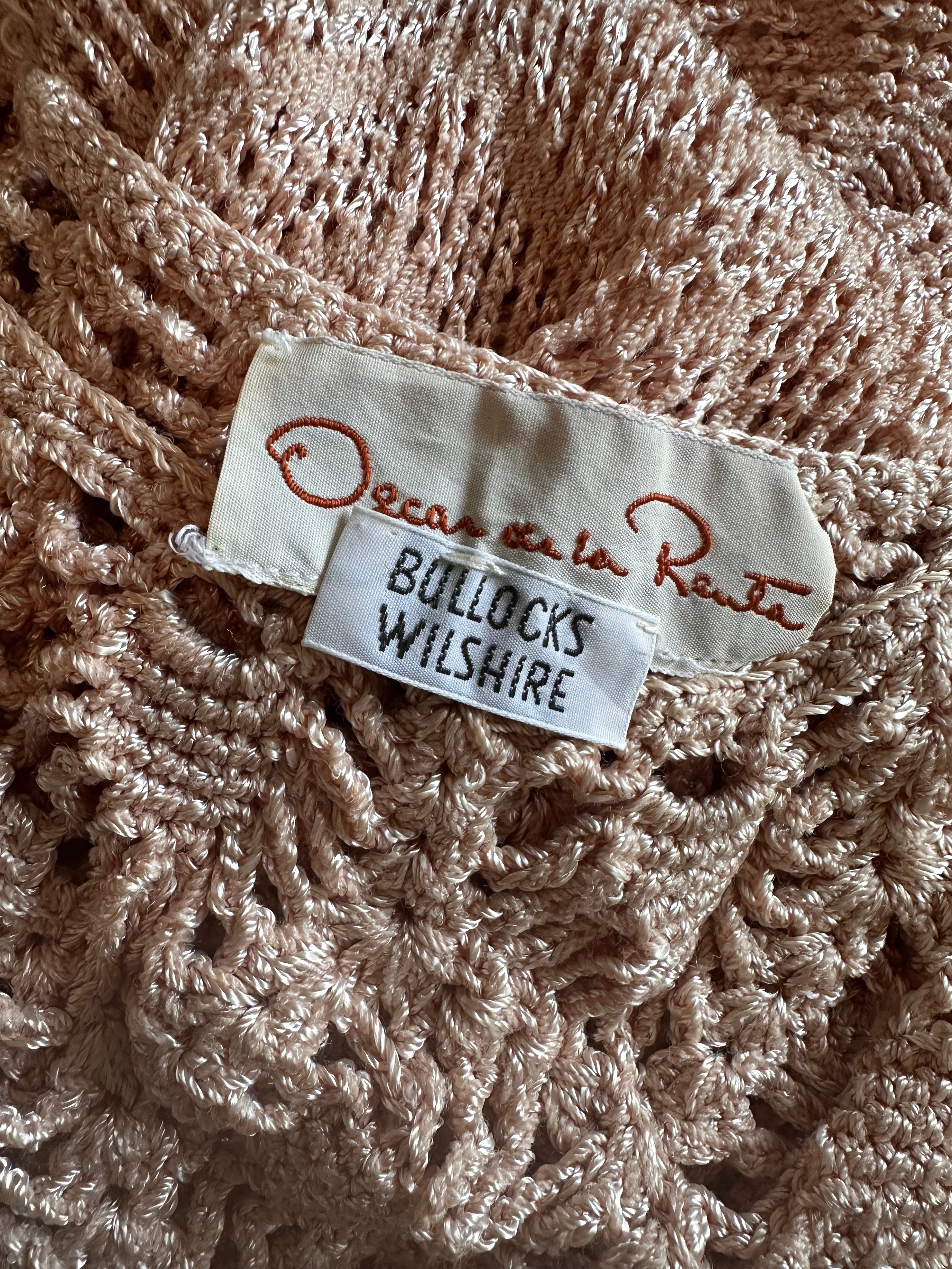 Exquisite vintage nude pink crochet dress by Oscar de la Renta.