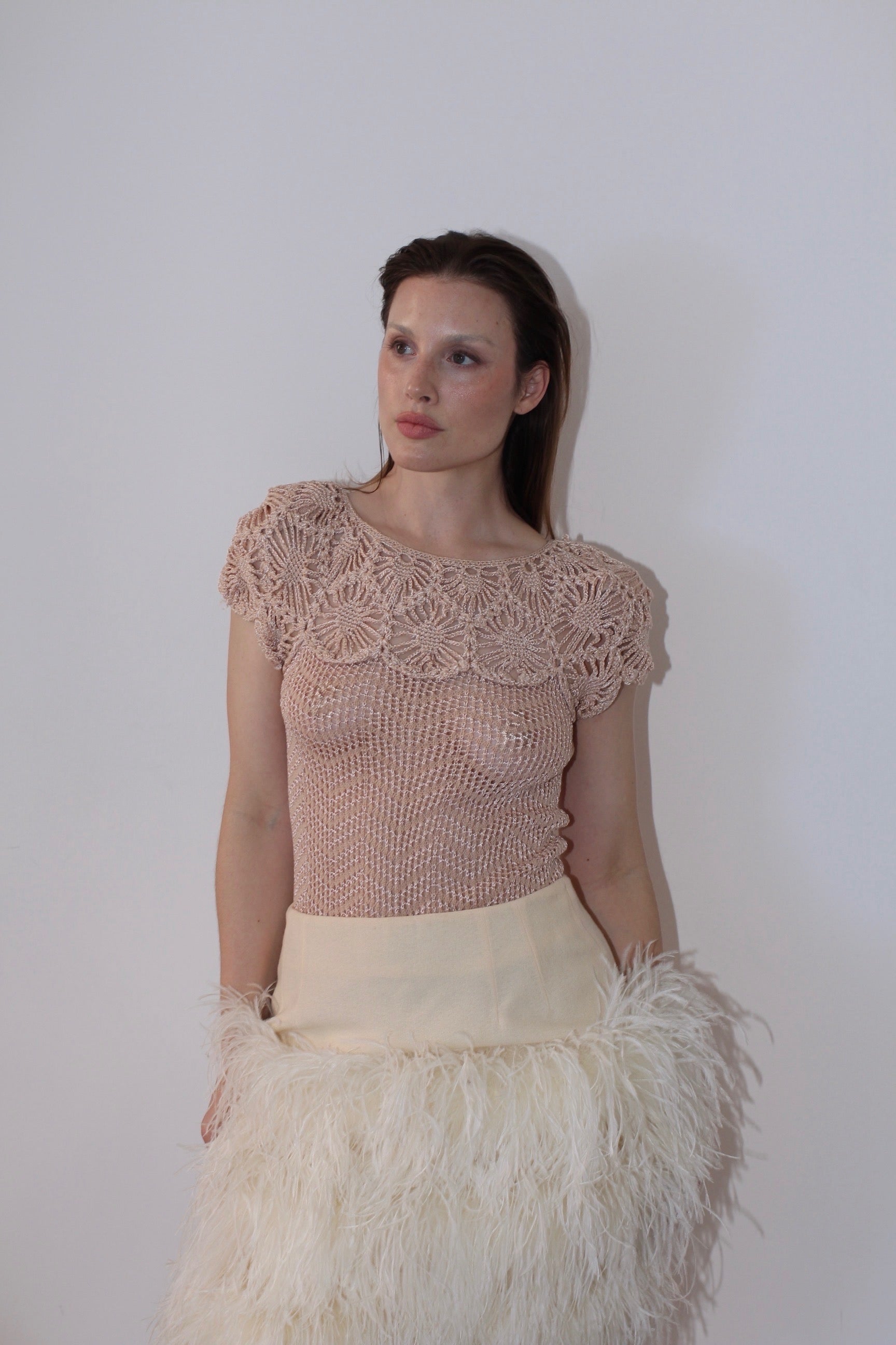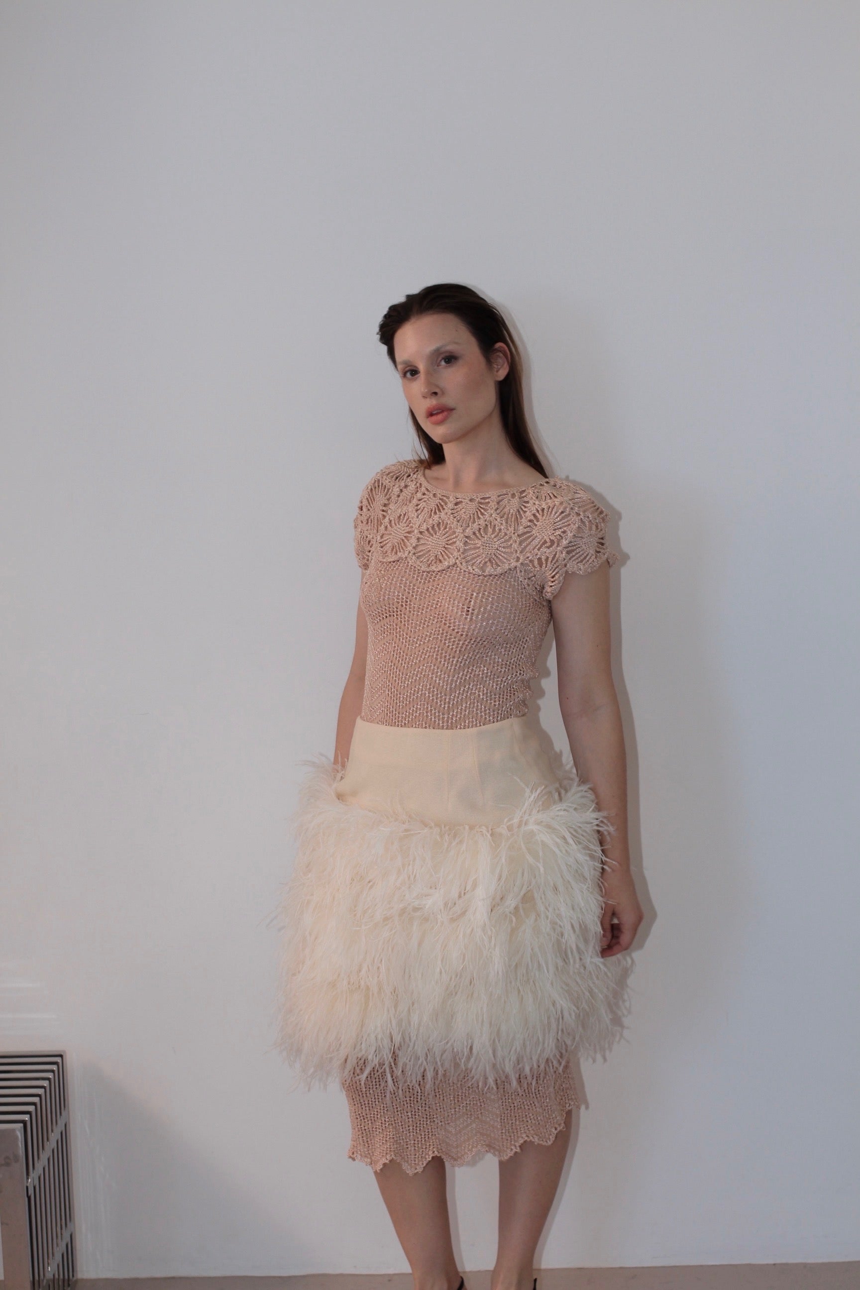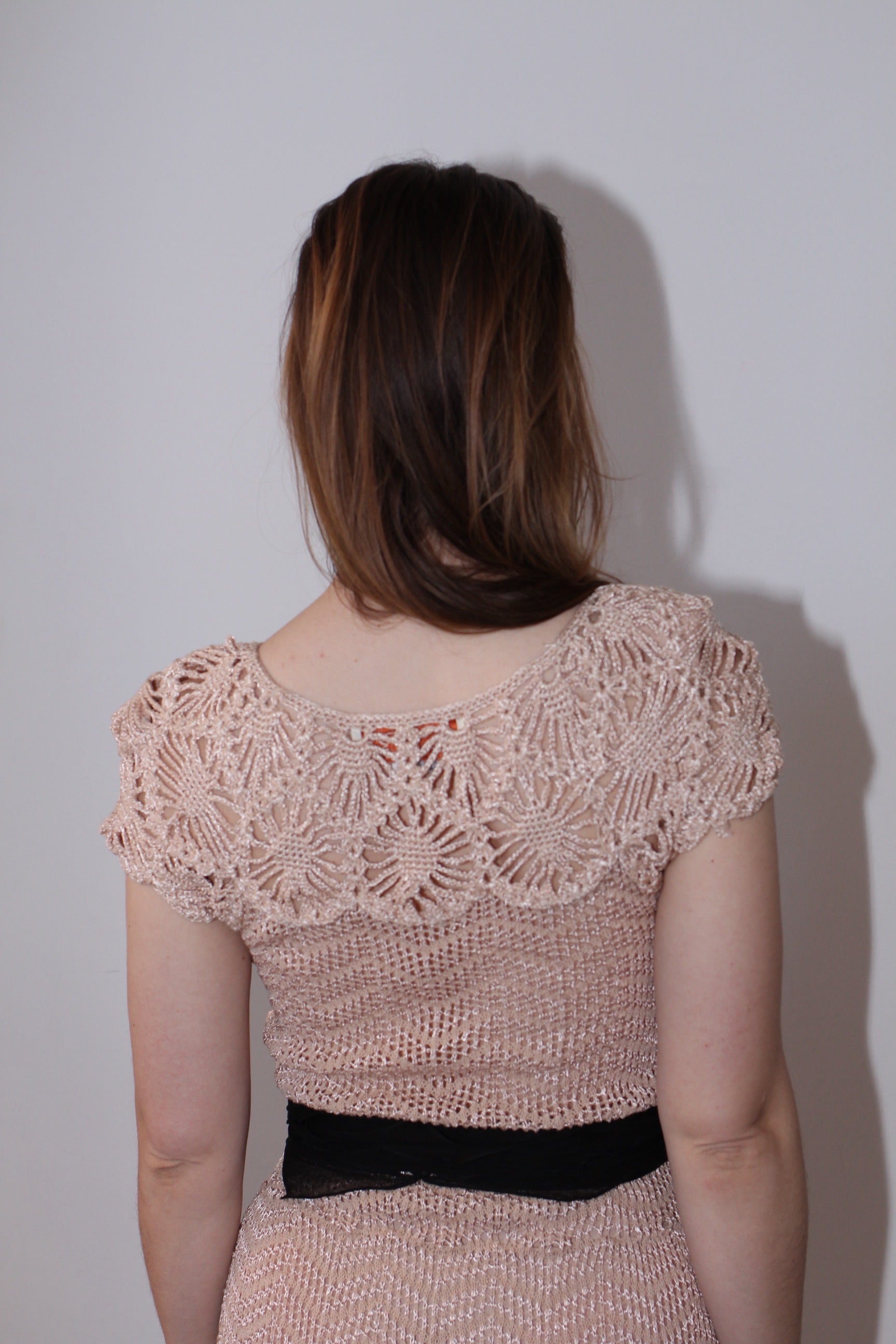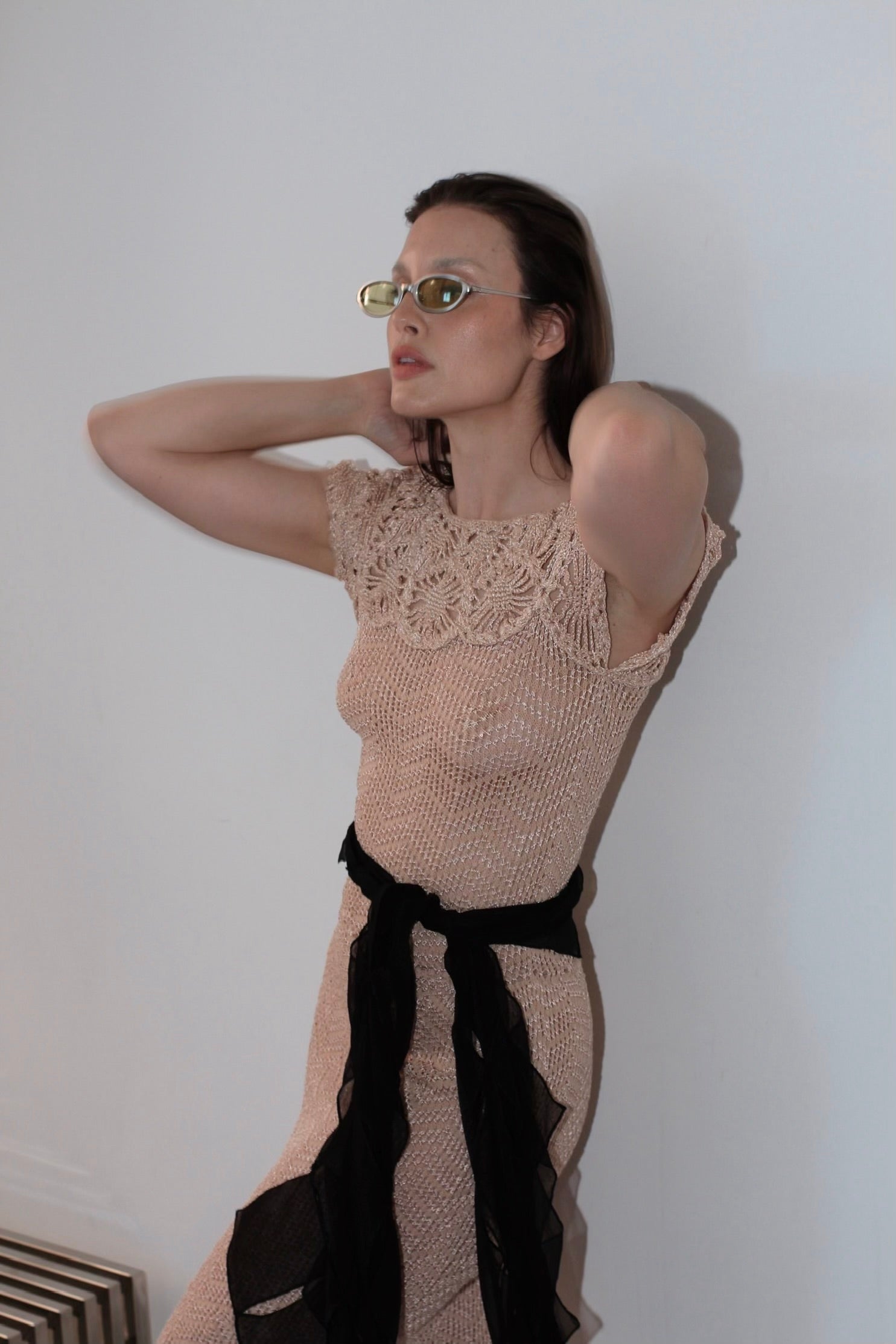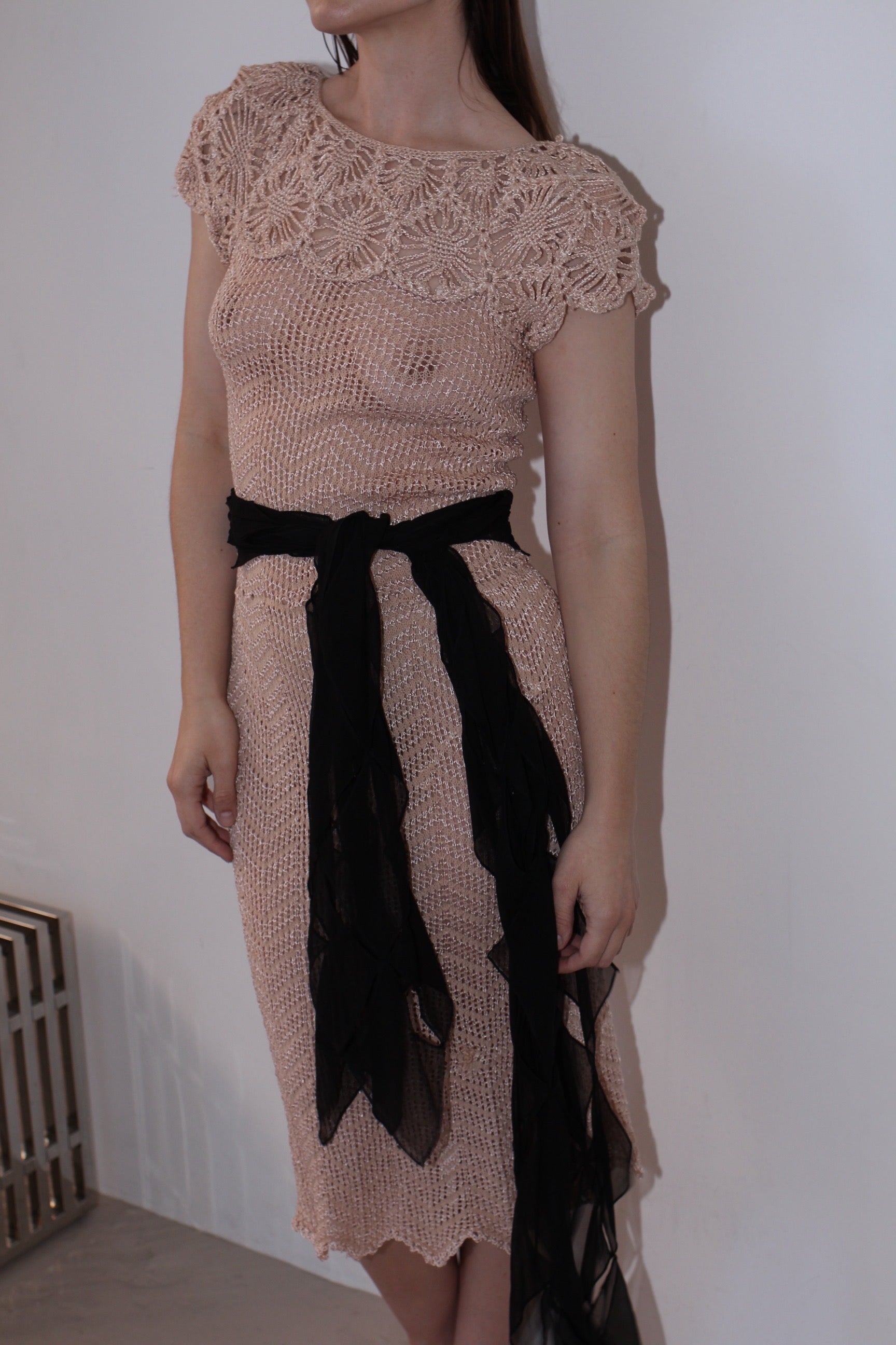 Exquisite vintage nude pink crochet dress by Oscar de la Renta.
