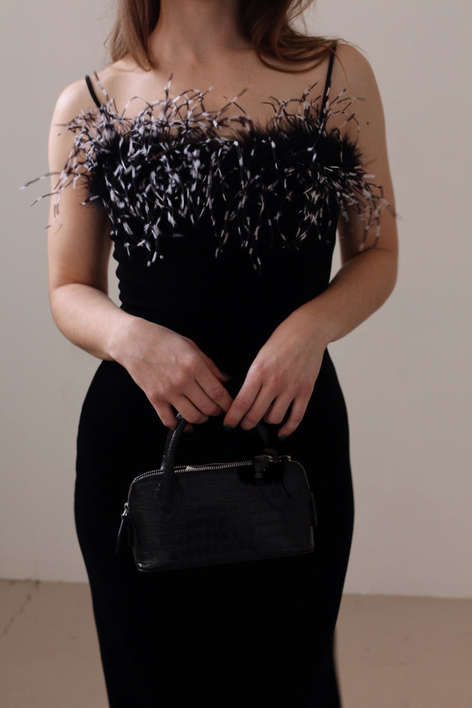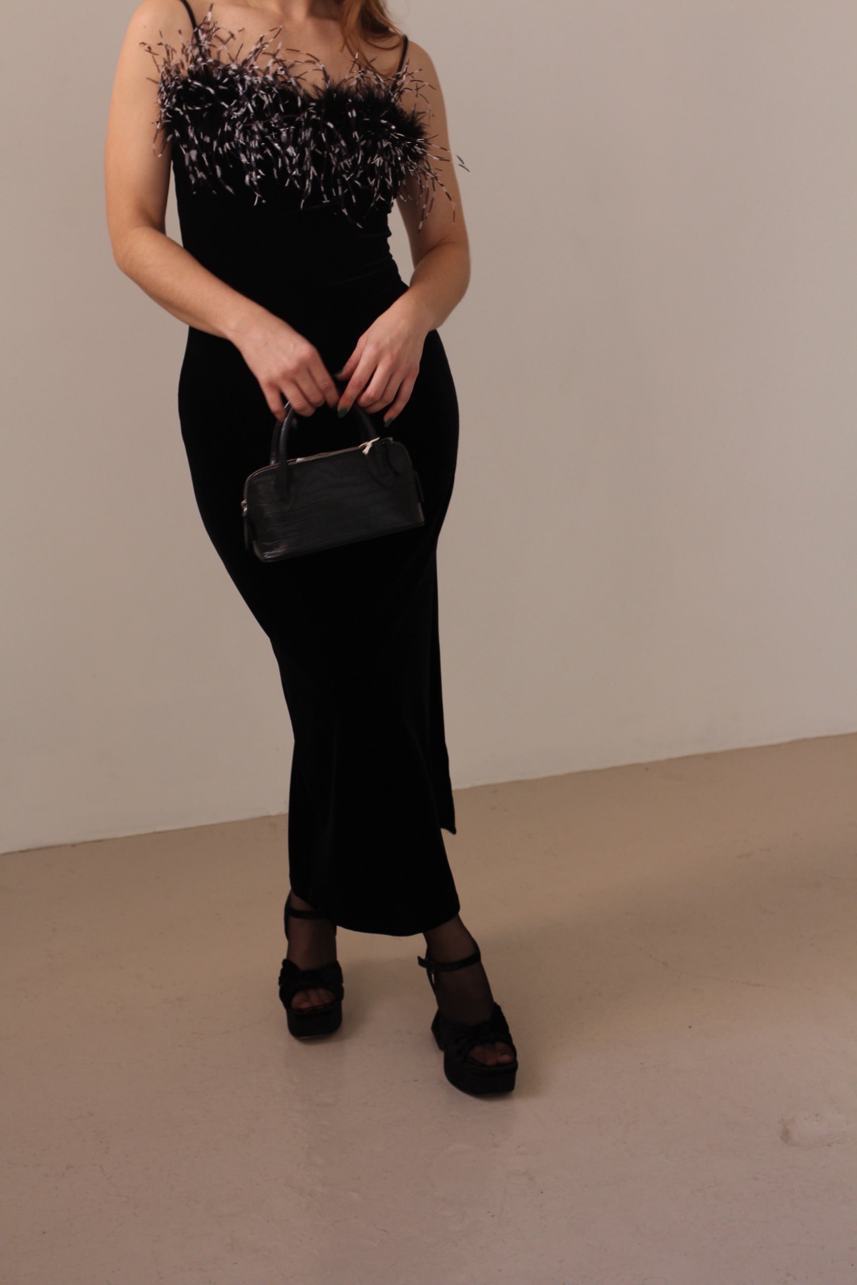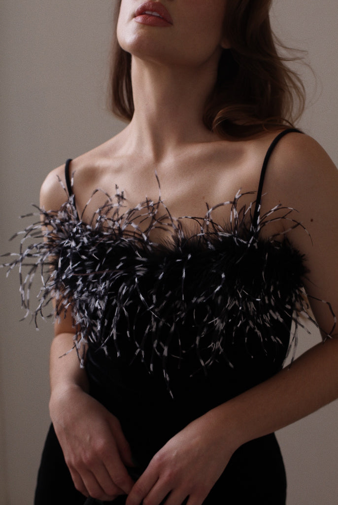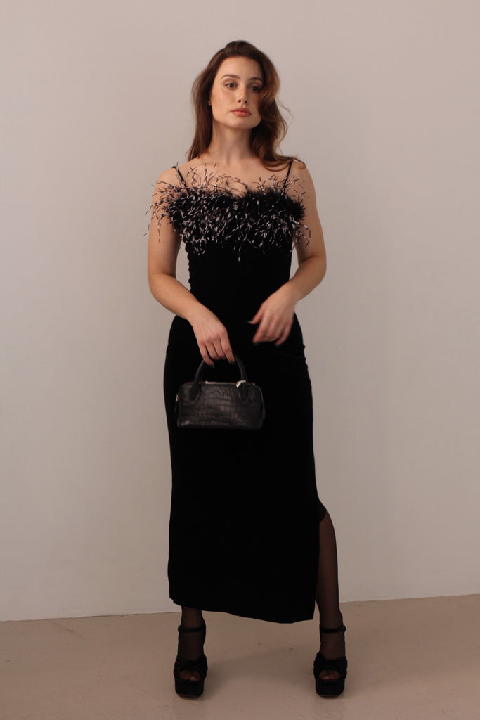 Vintage Black Velvet Feather Dress