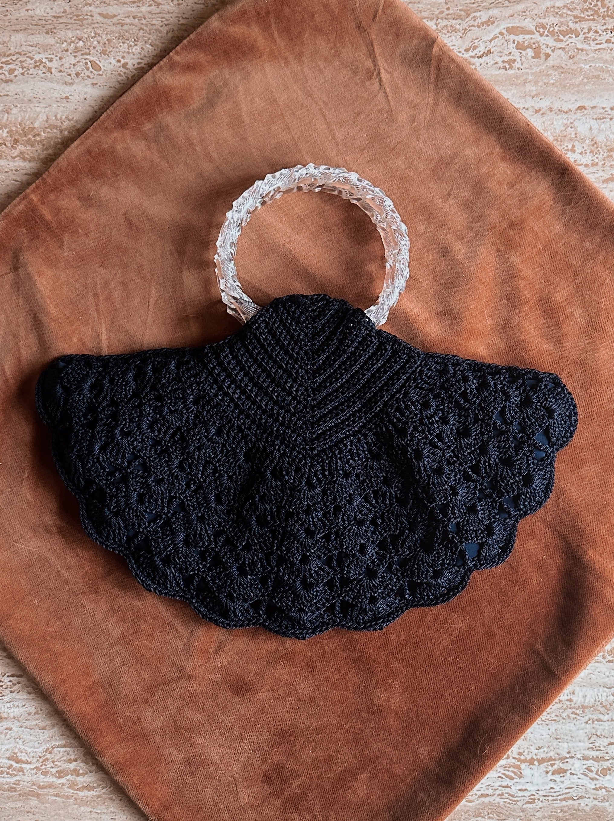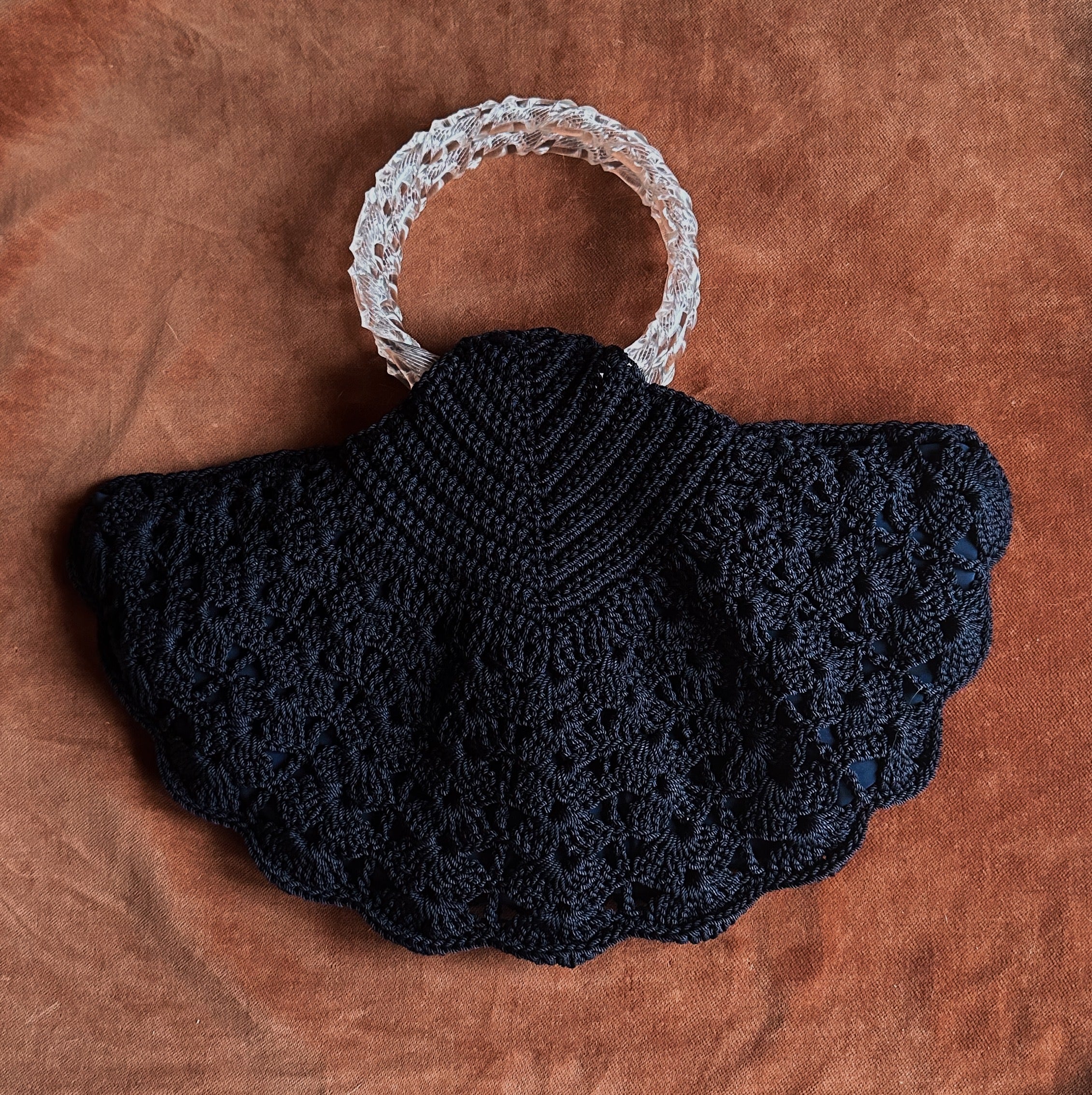 absolutely gorgeous 1940s crochet handbag featuring circular handles.