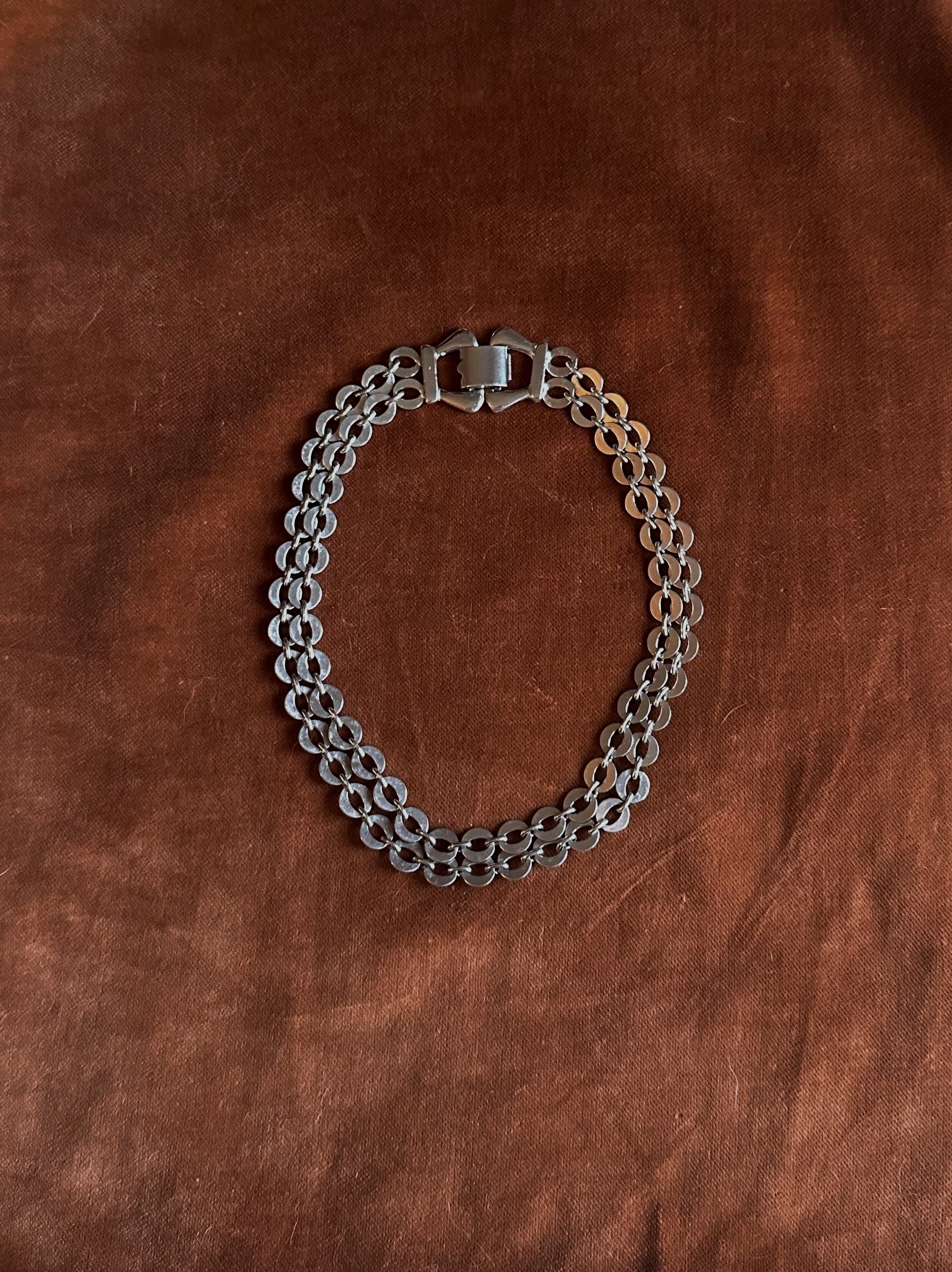 Vintage double strand necklace in a silver tone. Good condition with normal vintage wear. Length 14.5"